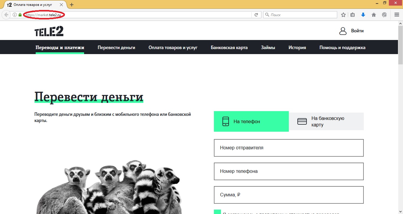 При помощи смски или USSD-запроса можно осуществить перевод через ресурс market.tele2.ru. Способ очень простой, с ресурсом легко разберется каждый пользователь (даже тот, который до этого не совершал такие перечисления, и не знает, как перевести средства). Сайт имеет понятный интерфейс, услуги размещены в категориях.